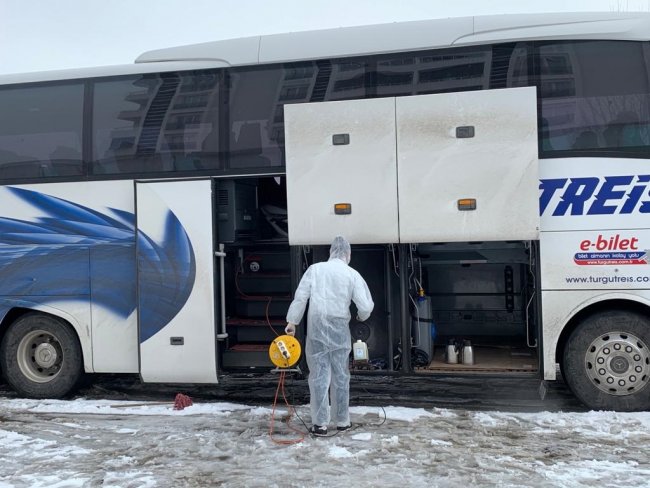 Tuvaletler, giriÅŸ ve çıkış kapıları, oturma yerleri, bekleme alanları, bahçe, otobüs terminalinin içi, bankolar ve dükkanlar dezenfekte edildi. Dezenfeksiyon iÅŸlemlerinin bir defaya mahsus deÄŸil, günlük olarak yapıldığını belirten firma yetkilileri, yolcularımız gönül rahatlığı ile yolculuk yapabilmeleri için bütün tedbirler alınmıştır, açıklamasında bulundular.